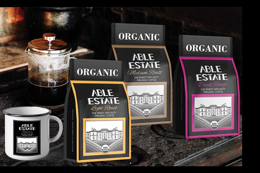 Branding, logo design, and custom font for a high-end line of organic coffee for people who appreciate a quality cup of coffee.
