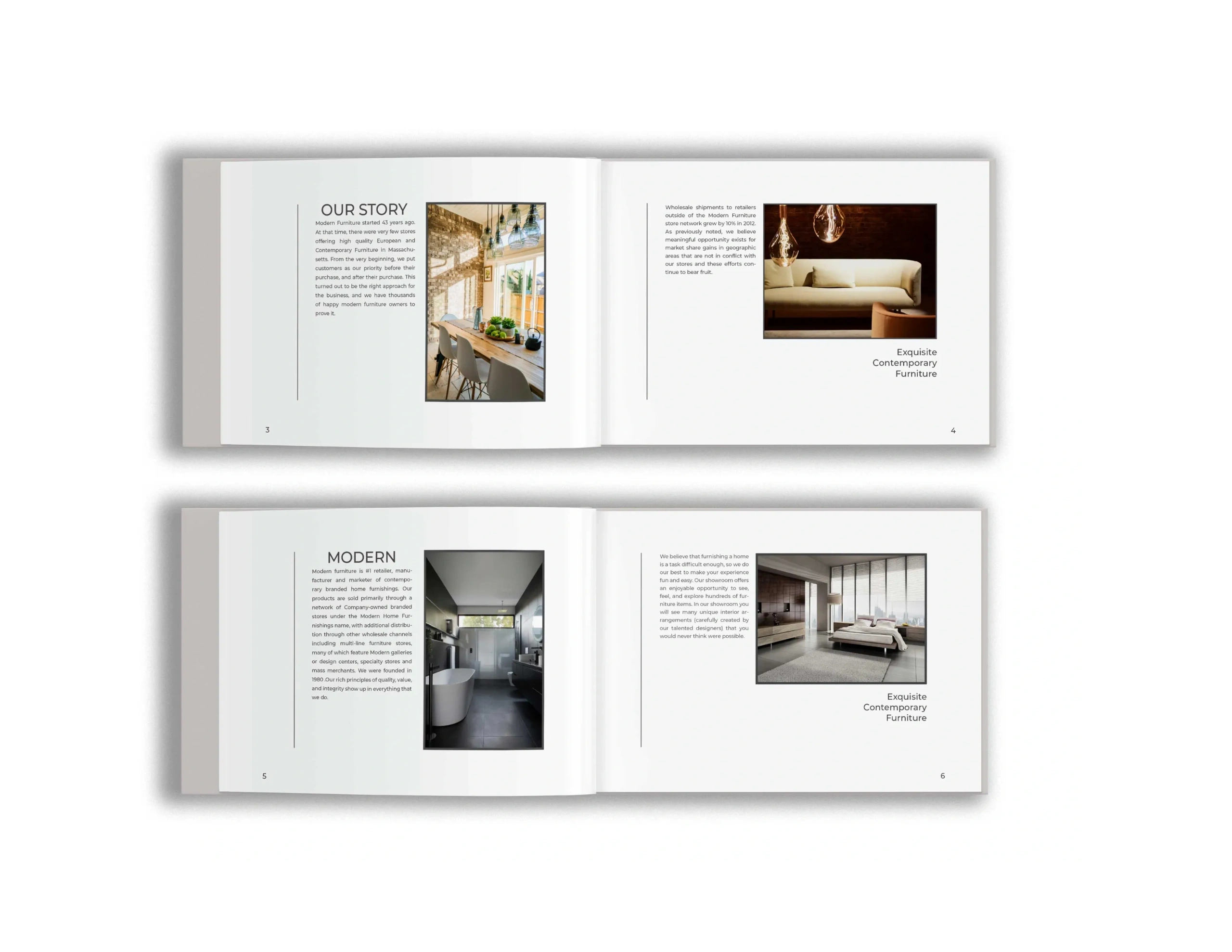 Modern Furniture is a high-quality, contemporary furniture store based out of Boston, MA. This annual report, which includes a customized font, was designed to match their modern style for all of their shareholders and investors.